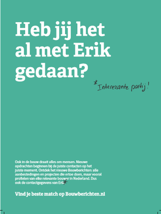 Op basis van de strategische sessie met het Lean Canvas is besloten om de netwerkfunctionaliteit van Bouwberichten centraal te zetten en deze uit te werken in speelse opvallende advertenties. Niet alleen in de printmedia van BIM Media, maar ook online en zelfs via de radio.